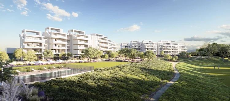 El proyecto ofrece espacios comunes como piscina, fogón, circuito de trote, juegos infantiles y un parque con vista a la cancha de golf, todo pensado para disfrutar de la vida en la costa.