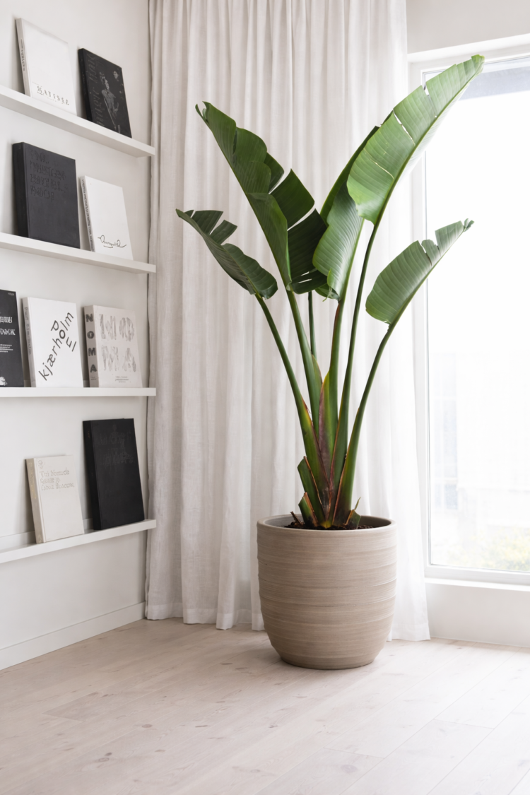 Los departamentos con orientación norte reciben luz natural durante gran parte del día, por eso, las plantas tropicales de hojas grandes son ideales, ya que necesitan buena luminosidad para crecer sanas y mantener su forma.